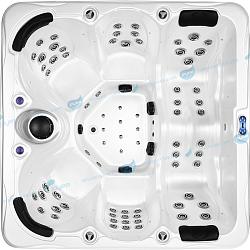 Для изделия таких размеров, в гидромассажном СПА-бассейне Ловиа Спа ZR7008 установлено довольно много форсунок - 49 штуки. Через них вода и воздух направленно воздействуют на тело, производя желаемый гидромассажный эффект. Каждый пользователь может индивидуально регулировать силу потока.